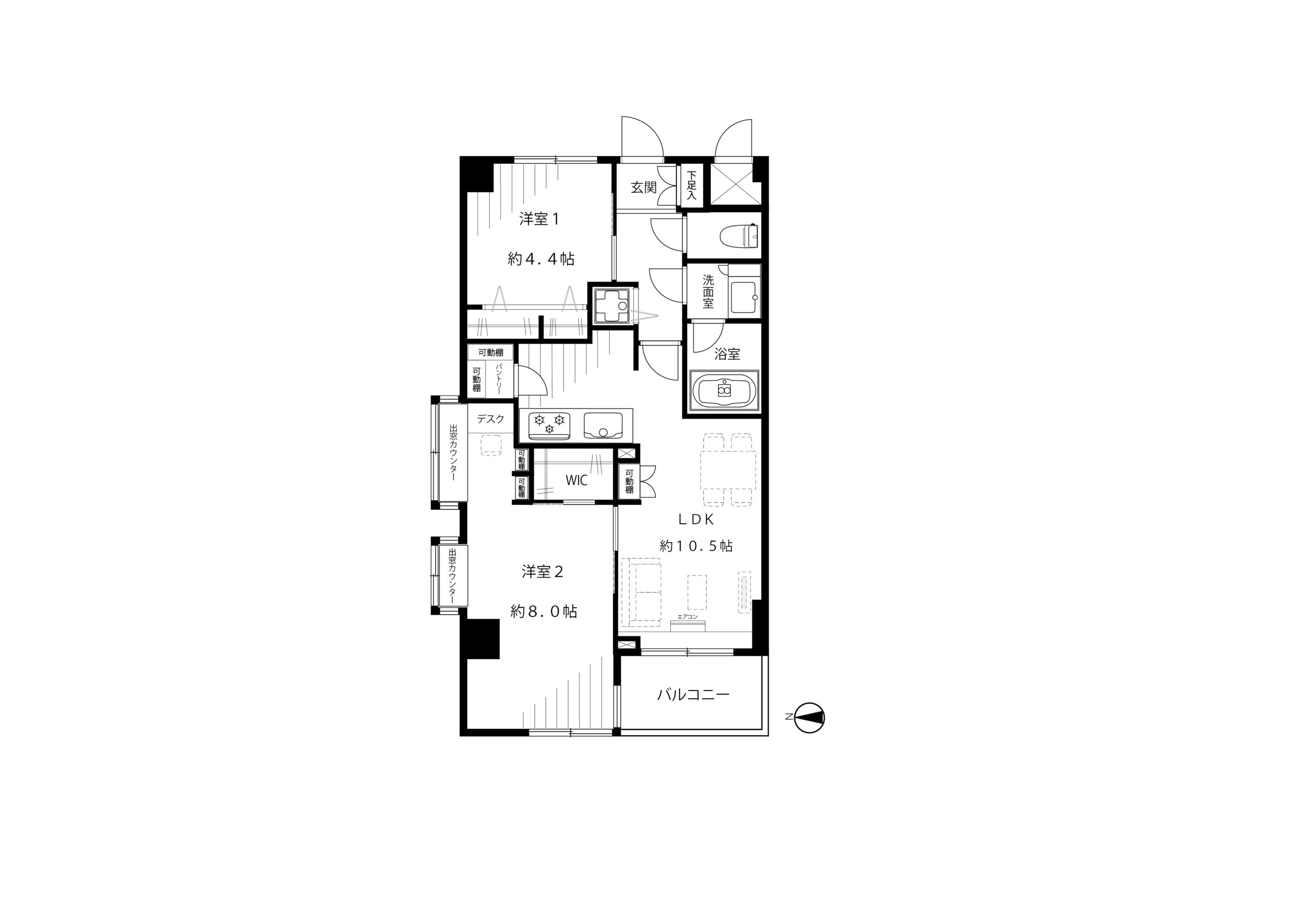 - 間取り:2LDK (壁芯専有面積:54.95㎡)